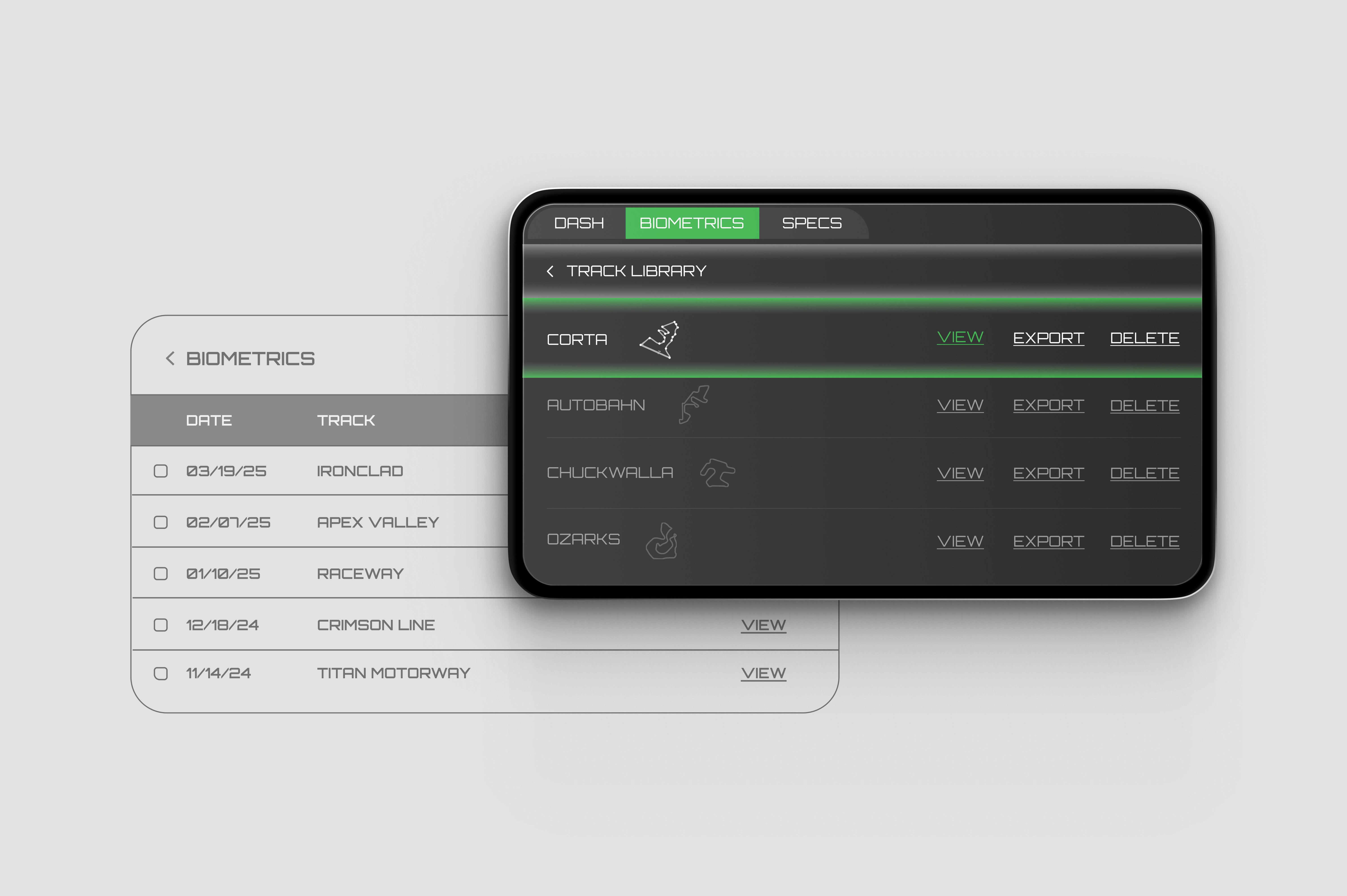 Began in light mode to define structure. Evolved into a darker, race-ready system using color intentionally — guiding attention without overwhelming the rider.