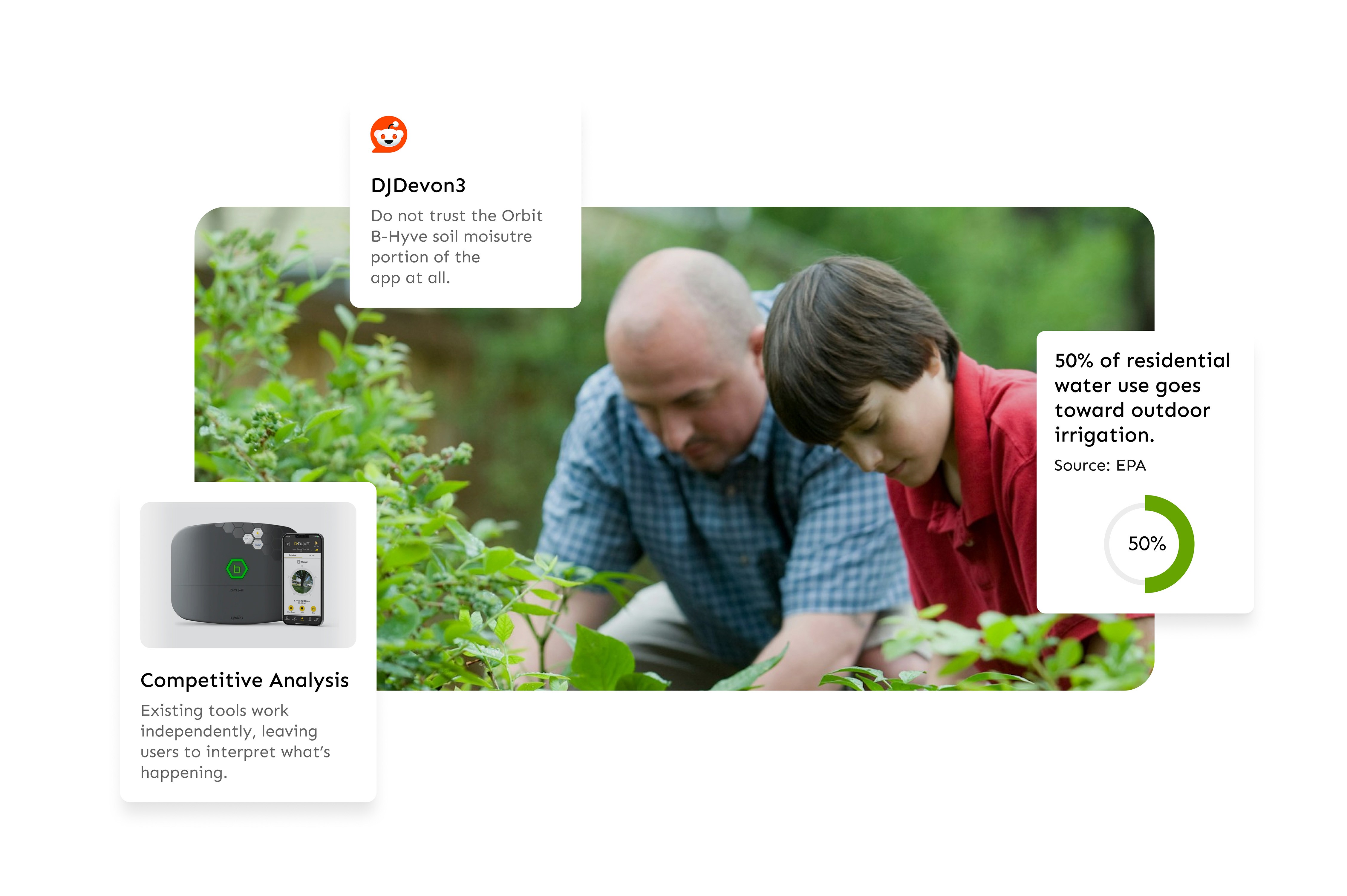 After reviewing Reddit forums, speaking with homeowners, and comparing existing products, a clear pattern emerged: smart lawn tools still require too much interpretation.
