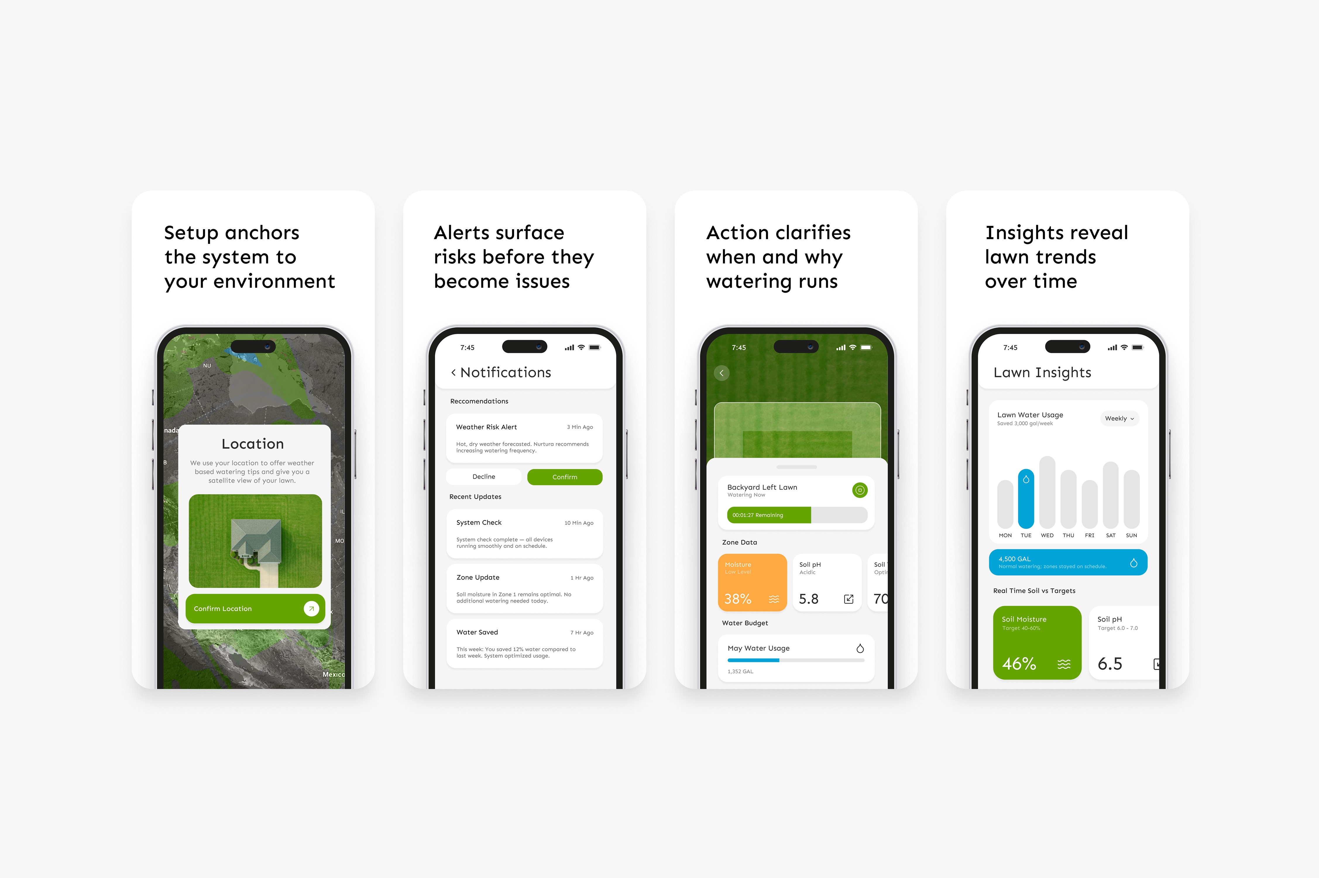 Nurtura rethinks lawn care as a connected system rather than a collection of tools. By linking soil sensors, weather inputs, and irrigation controls, it adapts automatically while keeping homeowners informed when it matters. This project focuses on reducing guesswork through intentional structure and quiet, supportive automation.